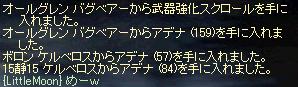 最近おかしばっかり食べている。 食べている。食べている。 やなの提案でどっか行くことに。 どっかをOGが決めあぐねていたが・・・ どうやら、SKTCで個人戦でレア対決を行うことにw やなからルール説明を受ける。 が、劉志あまり聞いていなくて・・・「強化scを出せば勝ち」 とだけ認識w 出せば勝ちw いざ!スタート! しょっぱなのレアw OG 重おめw 開始 2~3分 で試合が動く! でたww 出たクマ━ヽ(´(・)` )ノ━━!!!! 工エエェェ(´д`)ェェエエ工工 なぜか女性陣からブーイングが・・・。 へたこいたーーーOrz---!!! やな と 劉志が ガスガス狩る。 ランテレでばったりあったらヒール&ダークネス 周りは敵だ! みんな敵! そんな中、OGが「やなと劉志の構図~~~」がなんたら 言ってて、自分らは~~みたいに言ってたくせにーーー!! あっさり OGも DAIを掘るww 正味、20~30分の狩りで DAI 1枚 ZEL 1枚 なかなかいい感じですw ここでやっとルールがわかりました。 先に出した方が勝ちみたいです。 金額的にDAIのが高いからOGが勝者だと思ってたw なんか・・・空気読めなかったオイが悪者ですかね・・・w 重い・・・ボロさんはなぜか装備品だた・・。 OGはDAIを出しただけあってアデナいっぱいでしたw 静さんのは・・・。まぁ静さんのKBBからZEL出たんだけどねw アネさんはテレポscが20枚もww (;゜;∀;゜;) ・・・・・・・。 にゅっ にゅっ にゅ~~ん♪ SKT市場でまったりしてて、イラプキャッチボール してみましたw んでそれを やな が破壊しるwww ほかには、新規参入の復帰組みの はるさんと狩り しましたw Lv UP お(・∀・)め(・∀・)で(・∀・)と(・∀・)う! PR
